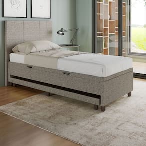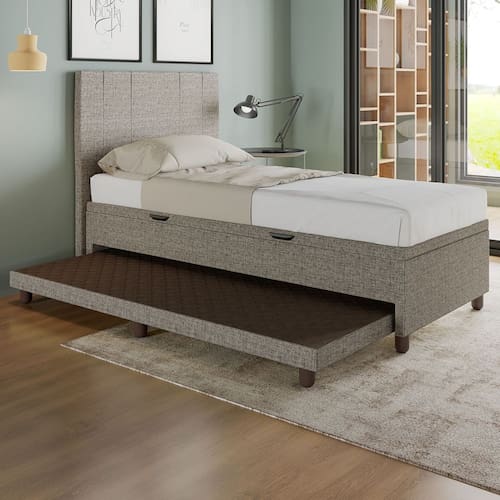 Base Cama Baú Solteiro com Cama Auxiliar c/colchão conjugado Linho SkyBox - Marrom