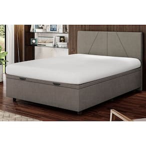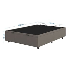 DIMENSÕES DA CAMA BOX BAÚ Altura total: 40 cm; Comprimento total: 188 cm; Largura total: 128 cm; Altura Interna: 28 cm; Altura dos pés: 6 cm; Suporta até 120 Kgs por pessoa. Peso: 28kg.