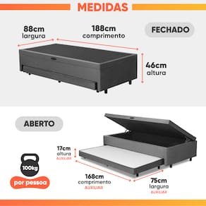 MODELO: Base Cama Bibox com Baú Solteiro e Cama Auxiliar 3 em 1 - 88x188x46 Bela