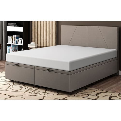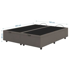 DIMENSÕES DA CAMA BOX BAÚ Altura total: 40 cm; Comprimento total: 203 cm; Largura total: 193 cm; Altura Interna: 28 cm; Altura dos pés: 6 cm; Suporta até 120 Kgs por pessoa. Peso: 28kg.
