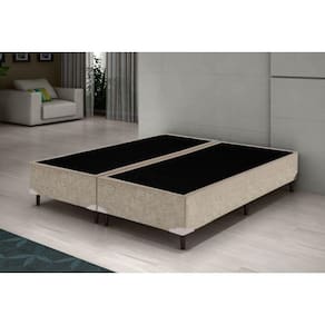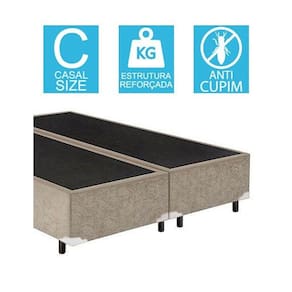 Feita com madeira reforçada 100% de reflorestamento, acabamento em tecido Suede, tratamento antialérgico e antiácaro, pés em madeira, estrutura recomendada para até 180kg distribuidos no box, laterais fechadas.