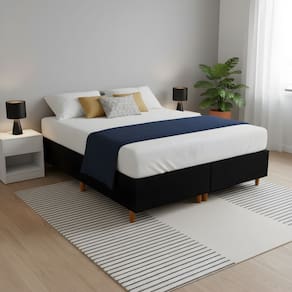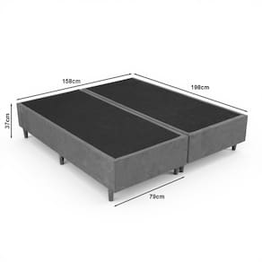 Ficha Técnica Detalhada: CaracterísticaEspecificaçãoProdutoBase para Cama BoxTamanhoQueen PadrãoCompatibilidade de Colchão158 cm x 198 cmCorPretoMedidas da Base (L x A x P)79 cm x 25 cm x 198 cm (2 peças)Altura dos Pés12 cmAltura Total (Base + Pés)37 cmMaterial da EstruturaMadeira de Eucalipto Reflorestada e TratadaRevestimentoTecido SuedeMaterial dos PésMadeira Maciça com Sapatas ProtetorasPeso SuportadoAté 150 kg por pessoa O que você vai receber: 2 Bases para Cama Box Queen na cor Preto1 Kit com 12 pés de madeira rosqueáveis2 Junções de metal OBSERVAÇÕES IMPORTANTES: