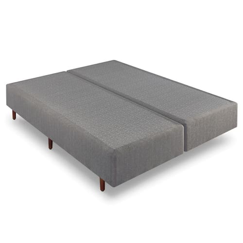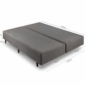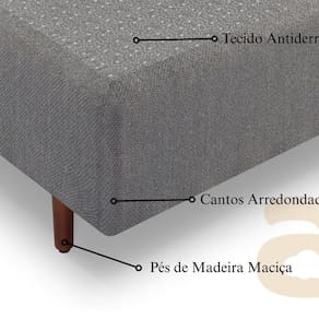 Seu revestimento em tecido confere um toque de elegância ao ambiente, enquanto a superfície com tecido antiderrapante proporciona maior segurança e estabilidade para o colchão. Os pés em madeira maciça são equipados com reguladores de altura, permitindo ajustar a base conforme a necessidade do seu ambiente.