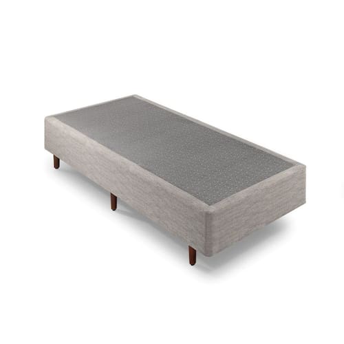 Seu revestimento em tecido confere um toque de elegância ao ambiente, enquanto a superfície com tecido antiderrapante proporciona maior segurança e estabilidade para o colchão. Os pés em madeira maciça são equipados com reguladores de altura, permitindo ajustar a base conforme a necessidade do seu ambiente.