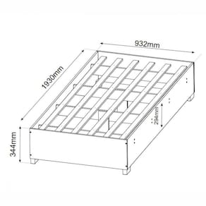 Altura (com pes): 34 cm | Largura: 93 cm | Profundidade: 193 cm