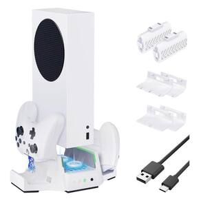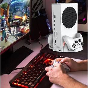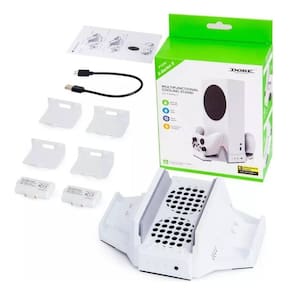 Não acompanha console, apenas cooler e acessorios. Suporte vertical de resfriamento e carregamento para Xbox Series S, 2 pilhas recarregáveis e base de carregador duplo para controle Xbox, ventilador com luzes LED e porta USB para acessórios. Suporte 3 EM 1: Projetado exclusivamente para Xbox Series S: o ventilador de resfriamento aprimorado e o suporte vertical podem evitar que o console superaqueça enquanto você joga. A base de modelagem única com chassi de metal o torna sólido e resistente; carrega e exibe 2 controles. Inclui 2 pacotes de baterias de controle de 800 mAh e 4 tampas de bateria 2 tampas para o controle da série Xbox, 2 tampas para o controle Xbox One . Sistema de resfriamento eficiente: A nova versão da estação de resfriamento para Xbox apresenta uma base mais alta que qualquer outro suporte de resfriamento para a série Xbox, espaço de resfriamento ampliado e dissipação de calor mais eficiente. Os dois ventiladores de alta velocidade incorporados podem soprar ar rapidamente, resfriar os consoles e prolongar sua vida útil. 3 velocidades ajustáveis alta, média, baixa, desligada cobrem diferentes níveis de dissipação de calor, com um botão de separado e uma luz indicadora de velocidade clara, mais fácil de alternar e desligar conforme necessário. Carga dual segura com indicador LED: A base de carregamento do controle para a série Xbox carrega 2 controles simultaneamente, ambos totalmente carregados em 3 horas. A luz indicadora do carregador de ombro mostra claramente o status de carregamento: a luz ficará azul enquanto estiver totalmente carregada ou pronta; a luz será vermelha durante o carregamento. Os chips inteligentes incorporados fornecem proteção contra sobrecarga e curto-circuito para os controles da série Xbox. Bateria recarregável adicional: Pacote de bateria do controle de 2 x 800 mAh com 4 tampas de bateria para Xbox Series S/X, Xbox One/One S/One X. Suporta mais de 10h de tempo de jogo e ciclos recarregáveis de carga total confiáveis 1200 vezes. 2 portas USB extras estendidas para dados e carga. Pacotes de baterias e estação de armazenamento: As bases de carregamento duplas carregam 2 controles sem fio Xbox simultaneamente. Inclui 2 baterias recarregáveis Ni-MH de 800 mAh e 4 tampas de bateria brancas para Xbox Series X/S e Xbox One, One S, One X e controles Elite. 2 barras de luz LED indicam o status de carregamento em vermelho e verde. Indicador LED: Conta com iluminação LED para indicar o status de carregamento, tem 2 barras de luz LED que indicam o status de carregamento em vermelho e verde. Excelente economia de espaço e fácil de usar: Basta colocar o console no suporte e conectar o cabo USB. Insira a bateria no controle e carregue-o na estação de armazenamento. Duas portas adaptadoras USB estão prontas para carregar outros acessórios de jogos. Todo o suporte é alimentado pela porta USB do console Xbox, não precisa de fonte de alimentação adicional. Inclui: 1 suporte vertical para Xbox Series S 2 pacotes de baterias recarregáveis 1 cabo de alimentação USB 2 tampas de bateria brancas para novos controles XSX e XSS 2 tampas de bateria brancas para controles Xbox One antigos. Homologação Anatel: 020671911681 Marca: Não Informado