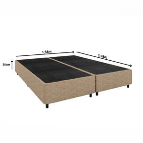 Caracteristicas: - Altura do box: 26 cm - Altura dos pes: 12 cm - Box bipartido - Estrutura: Madeira de reflorestamento (Eucalipto/Pinus) - Tecido: Poliester - Possui antiderrapante de TNT - 12 pes de plastico na cor preto - Tratamento Antiacaro/Antifungo e Anti-cupim - Suporta ate 200 kg de cada lado - Garantia de 12 meses