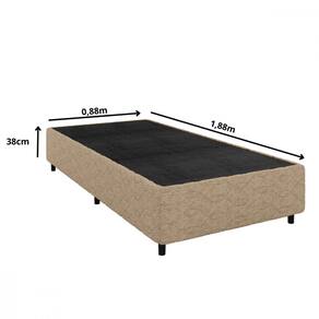 Características: - Altura somente do box: 26 cm - Altura dos pés: 12 cm - Estrutura: Madeira de reflorestamento -Eucalipto/Pinus- - Tecido: Poliéster - Possui antiderrapante de TNT - Possui 6 pés de plástico na cor preto - Possui tratamento: Antiácaro/Antifungo e Anti-cupim - Suporta até 200 kg - Garantia de 6 meses