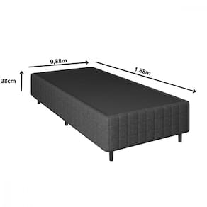 Características: - Altura somente do box: 26 cm - Altura dos pés: 12 cm - Estrutura: Madeira de reflorestamento -Eucalipto/Pinus- - Tecido: Poliéster - Possui antiderrapante de TNT - Possui 6 pés de plástico na cor preta - Possui tratamento: Antiácaro/Antifungo e Anti-cupim - Suporta até 200 kg - Garantia de 12 meses