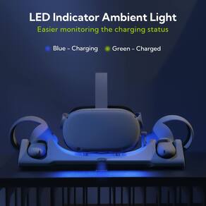 Design de linha suave e luz ambiente com indicador LED. Não é apenas uma estação de carregamento, mas também um adorável suporte Quest 2 para armazenamento Quest 2.Acabamento do material