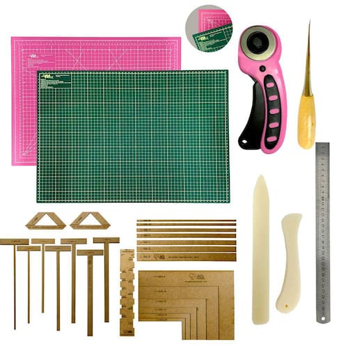 Quer trabalhar com Encadernação, Cartonagem e Scrapbook, e está precisando de um conjunto de ferramentas completo para te ajudar? Não procure mais... Temos a solução ideal para você! Kit com base de corte dupla face e flexível que serve como área de trabalho, possui a medida de 60cm x 45cm, excelente para organizar seu espaço, proteger seus moveis, cortar papeis, tecidos entre outros. Enviamos também um kit completo de réguas e Gabaritos em MDF para Scrapbook e artesanato. 7 - Gabaritos Medidas 6mmx30cm, 8mmx30cm, 10mmx30cm, 12mmx30, 15mmx30cm, 18mmx30cm, 20mmx30cm 2 - Réguas Fio de Cabelo 7- Esquadros Medidas: 30x22cm ( largura 5cm), 25x17cm (Largura 4cm), 21x13cm (Largura 3cm), 18x10cm (Largura 2cm), 16x8cm (Largura 1,5cm), 14,5x6,5cm(Largura 1cm) 7- Gabaritos em T Medidas: 6mmx32cm, 8mmx32cm, 10mmx32cm, 12mmx32cm, 15mmx32cm, 18mmx32cm, 20mmx32cm 1- Gabarito para Wire O (fio) 2x1 e 3x1 Medidas 2x1(Lado Direito): 5/8 120 Folhas, 3/4 140 Folhas, 7/8 180 Folhas, 1" 200 Folhas, 1 1/8 250 Folhas, 1 1/4 270 Folhas. Medidas 3x1 (Lado Esquerdo): 1/4 25 Folhas, 5/16 50 Folhas, 3/8 60 Folhas, 7/16 85 Folhas, 1/2 95 Folhas, 9/16 110 Folhas. Enviamos uma régua de metal de 60cm 2 ferramentas para dobrar e Vincar. 1 Cortador Manual de tecidos e papel com disco de 45mm. Agulhão furador com cabo de madeira Descubra a facilidade de fazer cadernos, capas, agendas entre outros com esse Kit completo, você poderá fazer cortes precisos em qualquer material sem ter que se preocupar em danificar as superfícies ou desperdiçar material. Desbloqueie seu potencial criativo! Compre agora o Seu kit completo e facilite os projetos de artesanato e patchwork.