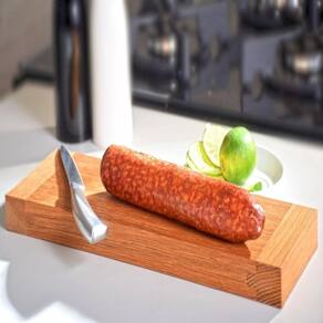 A tábua de corte da Simply Home pode ser utilizada para cortar embutidos, queijo, ou ainda, para servi-los diretamente na mesa.