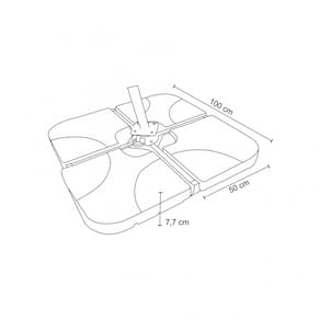 Uma base de ombrelone é imprescindível para o melhor funcionamento e manutenção do seu produto. A base Central é compatível e ideal para os modelos de Ombrelones Rivatti Móveis: San Martin e Cancún Base para ombrelone lateral em polietileno de alta densidade (HDPE), formada por 4 peças. Após cheia d'água pesa 60 kg. Medida do furo central: 5cm Altura: 7,7 cm Cor: 165 Preto Cor do Produto: Preto Cor Predominante: Preto Diâmetro Máximo do Encaixe da Haste: 22 mm Diâmetro Mínimo do Encaixe da Haste: 18 mm Formato: Quadrado Informações Complementares: Base para ombrelone lateral em polietileno de alta densidade (HDPE), formada por 4 peças. Após cheia d'água pesa 60 kg. Medida do furo central: 5cm Itens Inclusos: 1 Base de Ombrelone e Manual de Montagem Largura: 100 cm Manual de Montagem e Instalação: https://cdn2.madeiramadeira.com.br/atributo/rivatti/641361-manual-base-cruz-hdpe.pdf Material Principal: Polietileno Origem do Produto: Importado Peso: 8 kg Possui Pés: Não Possui Possui Rodízio: Não Possui Recomendações de uso: Instalar o ombrelone sobre solo estável e plano. Fixar o ombrelone solidamente na base. Após o uso, manter o ombrelone fechado, para evitar danos ao produto. Não permancer embaixo do ombrelone em caso de Suporta Até (kg): 15 kg Tipo de Preenchimento: Água