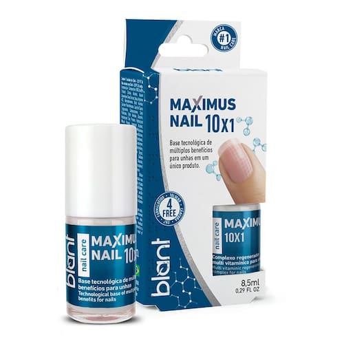 A Base De Tratamento Blant Maximus 10X1 é ideal para fortalecer e cuidar das unhas. Sua fórmula super vitaminada incorpora 10 ativos combinados a tecnologia que promove múltiplos benefícios em um único produto. Com uma ação é rápida, pois os complexos de microingredientes e ativos encapsulados nutrem a raiz e penetram nas camadas da unha, tornando a superfície mais resistente, uniforme e saudável.