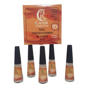 BENEFÍCIOS DA COMPOSIÇÃO: DEPANTENOL: Trata da descamação e quebras das unhas, deixando-as mais fortes e resistentes QUERATINA: Torna as unhas resistentes, endurecendo-as e dando brilho CRAVO: Age no fortalecimento e revitalização das unhas CANELA: Aliando natural no combate aos fungos as unhas ÓLEO DE AMÊNDOAS: Age diretamente no hidratação e suavização das cutículas, estimulando o crescimento saudavel e natural das unhas VITAMINA A: Age na regeneração das unhas, deixando mais fortes e hidratada. Indispensável para combater enfraquecimento das unhas VITAMINA B12: Desempenha o papel na produção de glóbulos vermelhos e no transporte de oxigênio para as células das unhas FORMA DE APLICAÇÃO: Aplique 1 a 2 vezes por semana, antes ou após o esmalte. Ideal para pessoas com unhas fracas, quebradiças, que passaram por unhas em gel ou fibra e com dificuldade para crescimento. Cavier base fortalecedora, é um tratamento intensivo, 0% formol, enriquecida com depantenol, queratina, óleo e amêndoa, vitamina A, vitamina B12, cravo e canela. RESULTADO: Estimula o crescimento, não deixa as unhas quebrarem ou lascarem e é antifúngico. PRECAUÇÕES: Não agite antes de usar Manter fora do alcance De crianças Não passar sobre cutículas feridas Em caso de alergia ou irritação suspender o uso imediato. Marca: Não Informado Ean: 0609963276158