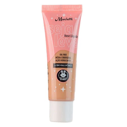 A Base Líquida Marchetti Seja Leve Bege Médio 04 proporciona média cobertura com efeito uniforme e super natural. Sua fórmula possui tecnologia oil free e uma excelente absorção, deixando sua pele hidratada e lisinha com uma make natural e uniforme. Possui textura semi-matte, efeito soft focus e Ácido Hialurônico na composição.