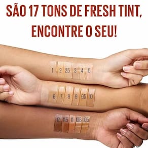 Além disso, sua fórmula exclusiva oferece glow e viço natural, proporcionando uma cobertura uniforme, sem pesar no rosto. A base Fit Me Fresh Tint é indicada para todos os tipos de pele e é indicada para quem deseja um aspecto mais natural no dia a dia, além de manter a pele protegida contra os danos causados pelo sol.