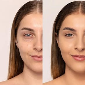 Aplique uma quantidade do produto na face e espalhe com o auxílio de um pincel, esponja ou com as pontas dos dedos.Comece pelo centro do rosto e espalhe para as extremidades até que fique uniforme. Se necessário, construa camadas para maior cobertura. Agite antes de usar.