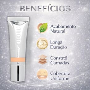 Conquiste uma pele impecável com cobertura uniforme, disfarçando poros e linhas finas.