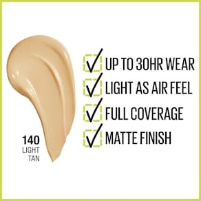 A Maybelline Superstay Base Longa Duração Prova D'àgua Cor: 140 possui uma alta pigmentação, oferecendo uma cobertura completa e uniforme, capaz de disfarçar imperfeições, manchas e olheiras. Sua fórmula isenta de óleo não obstrui os poros, evitando o aparecimento de acnes e garantindo uma pele saudável.