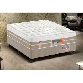 Características do produto: Modelo: Silver Star Air Modelo de colchão: Casal Estrutura: Madeira de Pinus e Eucatex Revestimento: Cetim + Camurcin Suede 100Cetim - Linun Pés: Madeira Altura dos pés: 13 cm Pé central: Sim Rodízios: Sim