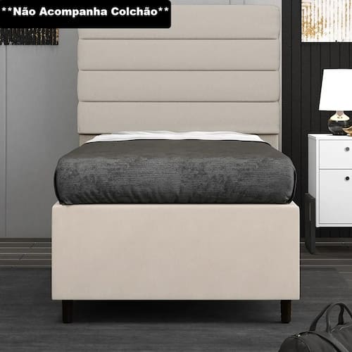 Características do Produto Material da Estrutura: Madeira de Eucalipto. Peso Suportado: 120 Kg sem impactos. Revestimento: Suede. Possui Colchão: Não. Possui Rodízios: Sim. Quantidade de Rodízios: 2 Rodízios. Possui Pés: Sim. Quantidade de Pés: 4 Pés. Material dos Pés: Madeira. Altura dos Pés: 12 cm. É bipartido: Não. É baú: Não. Tamanho da Cama: Solteiro. Diferenciais: - Estrutura resistente. - Fácil Manuseio. Sistema de Montagem: O produto é enviado montado, sendo necessário apenas a fixação dos pés. Manual de Montagem: Não. Complexidade da Montagem: Baixa. Conteúdo da Embalagem: 1 Base Box. Volumes: 1 Volume. Garantia do Fabricante: 90 dias contra defeito de fabricação. Montagem: Recomendamos que seja feita por um profissional. Recomendação de Limpeza: Utilize pano levemente úmido.