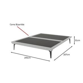 Altura: 31 cm | Largura: 205 cm | Comprimento: 207 cm | Requer Montagem: Sim | Inclui Manual de Montagem: Sim | Tamanho: King | Tipo de Cama: Bipartida | Quantidade de caixas de embalagem: 2