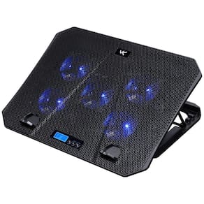 Especificações técnicas: - Conexão: USB - Material: Plástico e metal - Compatibilidade: Notebooks de 10 até 15,6 - Ajuste de ângulo: 5 posições - LED azul - Quantidade de fans: 5 - Fans: 5 - 7x7x1,5cm 1800 a 2200 RPM - Nível de ruído: 21 a 26 dBA - Portas USB: 2 x 2.0 - LED: 10 modos de LED RGB - Ajuste de velocidade dos fans: 6 ajustes com display LCD - Tensão nominal: 5V - Fonte de alimentação: 1.75W - Fluxo de ar: 63 CFM - Comprimento do cabo: 40cm - Dimensão produto: 36x26,5x3cm LxCxA - Dimensão caixa: 37x28x3,3cm LxCxA - Peso líquido: 0,85kg - Peso bruto: 0,9kg - Garantia: 1 ano.