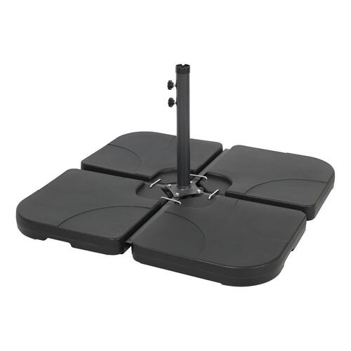 "Apresentamos a Base para Ombrelone 4 Pecas da Just Home Collection, um acessorio indispensavel para a sua area externa. Com design quadrado e cor preta, esta base e feita de polietileno de alta qualidade, garantindo durabilidade e resistencia contra as intemperies. Suas dimensoes sao de 50 cm de largura e comprimento, e 7,5 cm de altura, proporcionando um suporte estavel e seguro para o seu ombrelone.