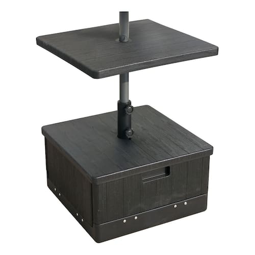 "Adicione um toque de elegancia e funcionalidade ao seu espaco ao ar livre com a Base para Ombrelone com Mesa Dubla 53x53x30 cm. Esta peca robusta, feita de Pead de alta qualidade, e projetada para resistir a todas as condicoes climaticas, garantindo durabilidade e longevidade. Com um acabamento na cor preta, esta base de guarda-chuva com mesa se adapta a qualquer decoracao externa, proporcionando um charme discreto e sofisticado.