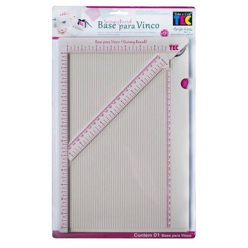 Base com marcações em baixo relevo, em intervalos de 1/8 de polegada, que permite vincar papéis e materiais de baixa espessura com o ausílio de uma espátula. A base tem braço extensor e marcações numéricas gravadas em centímetros e polegadas, para maior precisão. Ideal para criação de envelopes, porta-cartões, peças decorativas, embalagens, caixas de presente e convites.