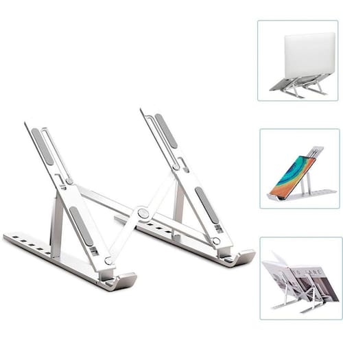 Base Portátil Articulada Vertical Digitador Notebook Prateado Compacto Suporte para Notebook em Alumínio, ideal para notebooks de 12 a 17 polegadas, proporciona ergonomia e conforto para transformar qualquer espaço em um ambiente de trabalho eficiente. Feito de alumínio, oferece durabilidade e um toque de sofisticação ao seu espaço de trabalho. Leve e portátil, é adequado para profissionais e estudantes que precisam se deslocar. Contribui para uma postura mais confortável durante longas sessões de trabalho.