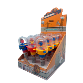 Cesta de basquete interativa com guloseimasDesign atrativo e coloridoTubo resistente para fixaçãoInclui 12 unidades por displayCertificado pelo INMETRO para segurança e qualidadeIdade Recomendada: Acima de 3 anos