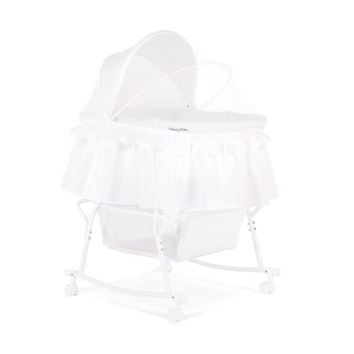 Dream On Me Lacy Berço portátil 2 em 1 em branco, berço leve para bebês com cesta de armazenamento, dossel ajustável e removível - Uso duplo: espaçoso e espaçoso, o Lacy é o berço ideal para o seu recém-nascido. E quando o LO precisar de relaxamento, gire as rodas para cima para converter o Lacy em um suporte de balanço. Use desde o nascimento até 11 kg/até que o bebê possa empurrar para cima/rolar sem ajuda - Sempre se aproxime: o Lacy tem uma estrutura de alumínio leve e vem com rodas giratórias com capuz que permitem que você empurre facilmente de cômodo em cômodo. Permite que você sempre tenha seu filho por perto, especialmente nos primeiros meses - TECIDO CONFORTÁVEL: O berço é feito de um tecido de espuma de poliéster macio e seguro. Babados e babados dão um apelo sonhador. Escolha entre 8 acabamentos únicos/de dois tons e estampados que combinam facilmente com qualquer tema de berçário - CARACTERÍSTICAS FUNCIONAIS: A prática cesta de armazenamento abaixo do berço permite que você mantenha os itens essenciais do bebê à mão. O Lacy possui um dossel completo multiuso que é parte de tecido de malha e também ajuda a manter insetos e insetos afastados - SEGURANÇA IMPORTANTE: O berço Lacy tem certificação JPMA para atender/exceder os padrões ASTM. As especificações do produto são: 86 x 45 x 100 cm A cm; pesa 5 kg. Inclui a almofada de colchão regulatória de 2,5 cm de espessura; as dimensões são: 76 x 38 cm x 38 cm A
