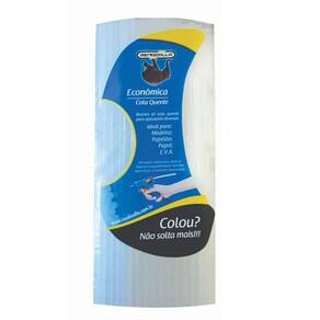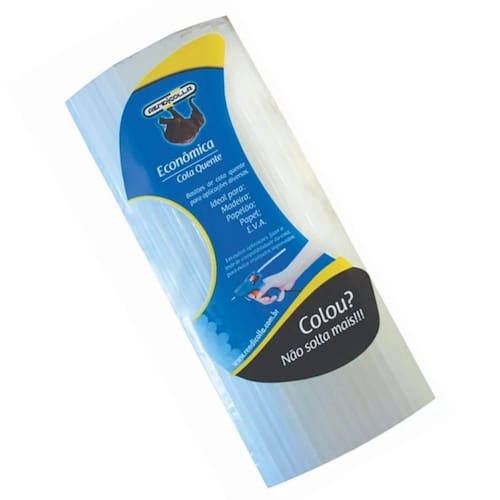 É um adesivo termoplástico de uso geral composto de e.V.A, e taquificante. Sua aplicação é para fechamento de caixas, fio de telefone, artesanatos, calçados, martelinho de ouro, etc. Itens inclusos: -01 refil bastão de cola quente econômica 500 gramas grossa. Dados técnicos: -cor: semi-transparente -tipo de cola quente: fina -unidades por pacote: aprox. 16 unidades -odor: neutro -diâmetro: 11,2 mm -comprimento: 300 mm -ponto de amolecimento r&b º.C : 87 92 º.C -validade: 2 anos Composição: -eva -taquificante a base de petróleo e pigmentos é importante observar a temperatura de aplicação, pois se aplicar e temperatura baixa, poderá comprometer a aderência, também é recomendado estocar em locais arejados e livres do sol com temperatura entre 10c e 30c. Ean: 7909463825980