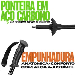 Reduz o esforço físico e o impacto nas articulações. Melhora o equilíbrio em terrenos irregulares. Fácil de transportar, graças ao design compacto e ajustável. Indicado para iniciantes e aventureiros experientes.