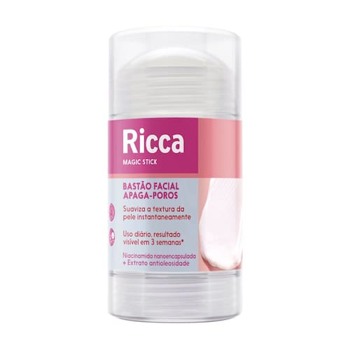 Bastão Ricca Facial Magic Stick Apaga Poros O bastão facial apaga-poros tem ação instantânea contra poros dilatados e textura irregular da pele, e o efeito é potencializado com o uso diário. A niaci
