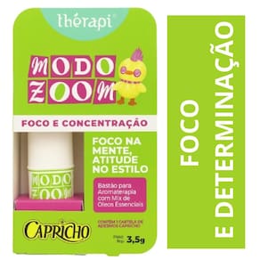 com mix de oleos essencias modo zoom foco e concentração 3,5g therapi capricho Foco na mente, atitude no estilo. Mil ideias, mil abas abertas, zero foco A gente entende. Modo zoom é seu aliado na hora de se concentrar no que importa - seja pra estudar, criar ou colocar a mente no lugar. Com ingredientes naturais, veganos e sem testes em animais, te ajuda a organizar os pensamentos, sem perder o brilho. Foco também é autocuidado e aqui, a gente faz isso com personalidade. ========== Composição português : triglicerídeo caprílico/cáprico, cera de abelha sintética, cera de carnaúba sintética, óleo de soja, óleo de coco, cera microcristalina, de cacau, óleo essencial de laranja doce, óleo essencial de cravo, óleo essencial de bergamota, óleo essencial de lavanda, de karité, óleo de amêndoa doce, fenoxietanol, caprililglicol, bht, citral, d-limoneno, eugenol, linalol. ========== Modo de uso: aplique o produto nas áreas desejadas, como pulsos e pescoço massageando o local com a ponta dos dedos. Anvisa: 25351.091886/2025-08