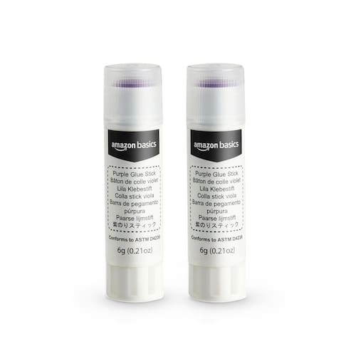 Bastões de cola escolar laváveis roxos Amazon Basics, secam e transparentes, bastão de 0,21 onças, pacote com 2