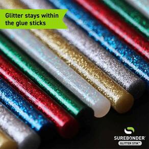 Mini Bastão de Cola Quente com Glitter GL-12V Surebonder T – 2 de cada. Prata, dourado, azul, verde e vermelha – Pacote de 12 variedades. Mini bastão de cola quente. 12 por pacote. -