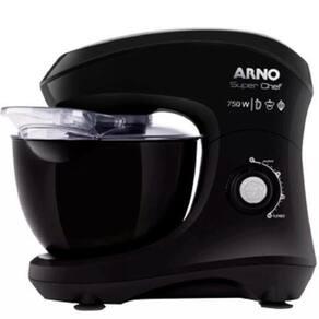 batedeira Planetária Arno Super Chef 750W 5 litros 15 velocidades Volt.: 127V / 220V Sigla: KM00 Marca: Arno Potência (Watts): 750 Consumo (kW/h/mês): número de Velocidades: 15 Tipo de Material: Corpo em Plástico, Tigela em Plástico e Acessórios em Aço Inoxidável Volume: 5L