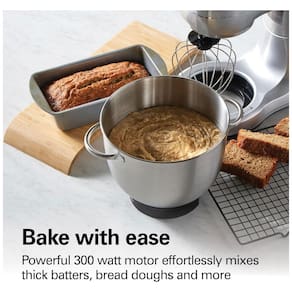 Construído para uma variedade de massas e misturas, este Hamilton Beach Stand Mixer pode fazer de tudo, desde bater merengues delicados até misturar massa de pão pegajosa. O potente motor de 300 watts pode lidar com os ingredientes mais espessos, incluindo os biscoitos de chocolate com manteiga de amendoim que sua família devora. E a melhor parte é que você nunca precisa raspar a tigela ou misturar manualmente no final a ação de mistura planetária gira os batedores ao redor de toda a tigela, para uma mistura uniforme e completa. Sete velocidades permitem passar de um movimento lento a uma mistura rápida, com controle exato em cada uma. Além disso, um guia útil na parte superior do misturador permite que você saiba qual velocidade usar para vários métodos de mistura. Os pés antiderrapantes mantêm o misturador imóvel enquanto estiver em uso, e o protetor de respingo protege contra gotejamentos, quedas e derramamentos.