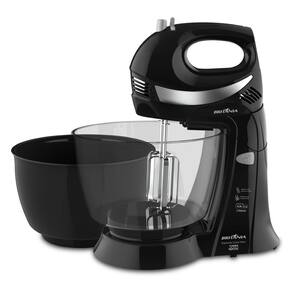 Possui 400W de potência, 4 velocidades + Função Turbo, regulagens que melhor se adequam aos mais variados tipos de receitas. Com duastigelas: Uma com capacidade para 3,1 litros e outra transparente (possibilita a visualização do preparo das receitas) com capacidade para 4,3 litros.