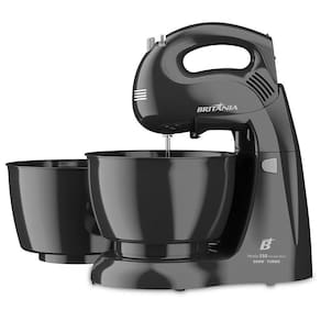 Batedeira Britania Perola Turbo possui 500W de potencia e para sua comodidade ela e Double Bowl, vem com duas tigelas para voce preparar receitas para familia toda.