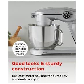 Apresentamos a Batedeira Instant Pot Stand Mixer Pro, com potência de 600 watts para lidar com qualquer tarefa de mistura. Com desempenho de mistura poderoso e 10 configurações de velocidade, esta batedeira possui temporizador digital regressivo ou progressivo. Sua tigela grande de 7,4 litros é perfeita para receitas grandes, enquanto seu design leve facilita o transporte. Os acessórios inclusos - pá de mistura, gancho para massas e batedor - são de aço inoxidável e podem ser lavados na lava-louças. Com motor potente de 600 watts, esta batedeira pode lidar com diversas tarefas, desde bater claras em neve até amassar massas. A interface digital com 10 configurações de velocidade e temporizador garante praticidade ao seguir receitas. A construção resistente em metal fundido garante durabilidade. Com 20% menos peso que as principais batedeiras do mercado, a limpeza é fácil com a tigela, pá, gancho e batedor de aço inoxidável. A batedeira acompanha tigela de 7,4 litros de aço inoxidável, pá de mistura, gancho para massas, batedor e proteção contra respingos removível. Possui hub expansível para uso de acessórios opcionais. Descubra receitas incríveis com o aplicativo Instant Brands Connect. Cor Prata. Dimensões do produto: 37,8cm x 24,4cm x 34,5cm. Capacidade: 7 litros. Peso do item: 8,6kg.