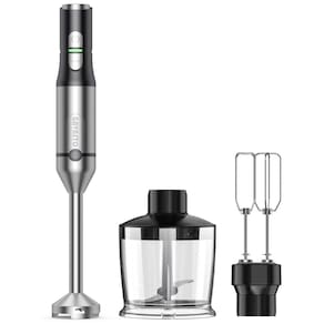 Experimente o poder durável da Batedeira de Imersão GAVASTO JHB328, equipado com um motor sem escovas que garante potência duradoura e estável. Suas lâminas exclusivas de titânio de 4 pontas e motor poderoso de 1000W proporcionam resultados consistentemente suaves ao misturar ingredientes difíceis, como cubos de gelo e frutas congeladas. Com 15 velocidades e modo Turbo, você pode personalizar a textura de suas receitas. Esta batedeira de imersão é fácil de operar e vem com acessórios de cozinha essenciais, como um copo misturador, um picador e batedores de ovos.