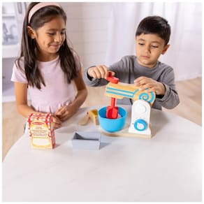 A batedeira de madeira realista é perfeita para misturar ingredientes e fazer guloseimas deliciosas. Os mostradores numéricos ajustam a velocidade e a manivela gira a tigela que cabe na batedeira. O conjunto inclui dois pedaços de manteiga e um ovo de duas partes, ambos com abas autoaderentes que podem ser cortados com a faca de madeira apropriada para crianças. A caixa de mistura para bolo de 450g, um pão de bolo fingido e uma forma de bolo também estão inclusos. Crianças a partir de 3 anos vão adorar quebrar, fatiar, misturar e servir guloseimas assadas com este conjunto que incentiva o pensamento criativo e a brincadeira imaginativa e promove a memória e as habilidades numéricas. O conjunto Pesa 1,11 Quilos. O conjunto de misturadores MakeaCake de madeira é um ótimo presente para crianças a partir de 3 anos. Adicione o conjunto de fantasias Melissa Doug Chef RolePlay para completar a experiência de simulação e dar às crianças uma opção envolvente para diversão sem tela. Desde a fundação da empresa, há mais de 25 anos, Melissa Doug tem fornecido consistentemente produtos inovadores que inspiram o pensamento aberto, incentivam as crianças a ver novas possibilidades e oferecem inúmeras maneiras de brincar.