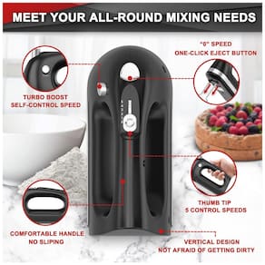 5 velocidades com botão de ejeção Este misturador manual com 1 a 5 velocidades diferentes. Seja em velocidades lentas, médias e rápidas para atender às suas necessidades de mixagem em todas as direções.