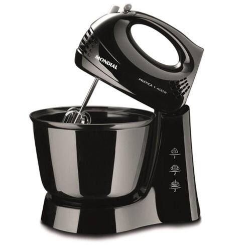 Para preparar diversas receitas como massas leves e mousses com praticidade e alta performance conte com a batedeira Prática Black da Mondial. Seus 400W de potência e tigela com capacidade para 3,6L proporcionam mais eficiência na hora de bater suas massas. Aproveite suas 3 velocidades e também a função turbo para preparar suas receitas de forma mais ágil e completa. Os batedores são de aço inox, oferecendo mais resistência e durabilidade ao produto e se soltam facilmente quando o botão ejetor é pressionado. A Mondial é a marca de eletrodomésticos mais vendida do Brasil e a escolha de milhões de consumidores. Sempre inovando e buscando soluções para o bem-estar das pessoas, oferece uma linha completa de produtos. Em constantes pesquisas junto aos consumidores, seu portfólio ganha destaque na qualidade, no design moderno e na excelente relação custo x benefício. A Mondial orgulha-se de ser 100 brasileira e ser eleita pelo 4º ano consecutivo uma das melhores empresas em atendimento ao consumidor pelo Reclame Aqui. Disponível nos principais pontos de venda do Brasil, oferece mais de 1.400 pontos de assistência técnica.