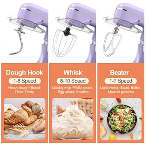 Acessórios inclusos: Gancho para massa (dough hook), batedor (beater), fouet (whisk), protetor de respingos, tigela inox